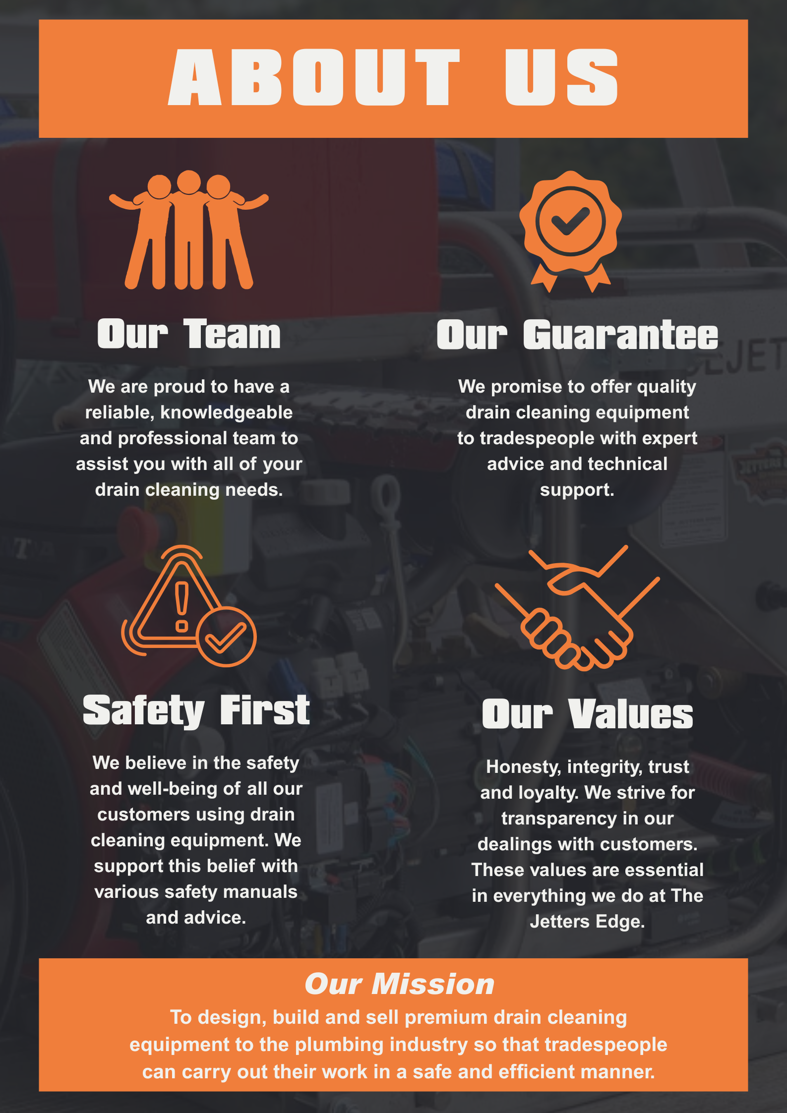 When you choose The Jetters Edge, you're choosing more than just plumbing supplies – you're choosing a commitment to quality, dedication to excellence, local expertise with international reach, along with a genuine understanding of the challenges plumbers face in Australia and Worldwide. We understand the unique needs of the Australian plumbing industry, and our commitment to local expertise ensures that you receive products tailored to the specific challenges you face. We are passionate about providing our customers with the right solution for their business.